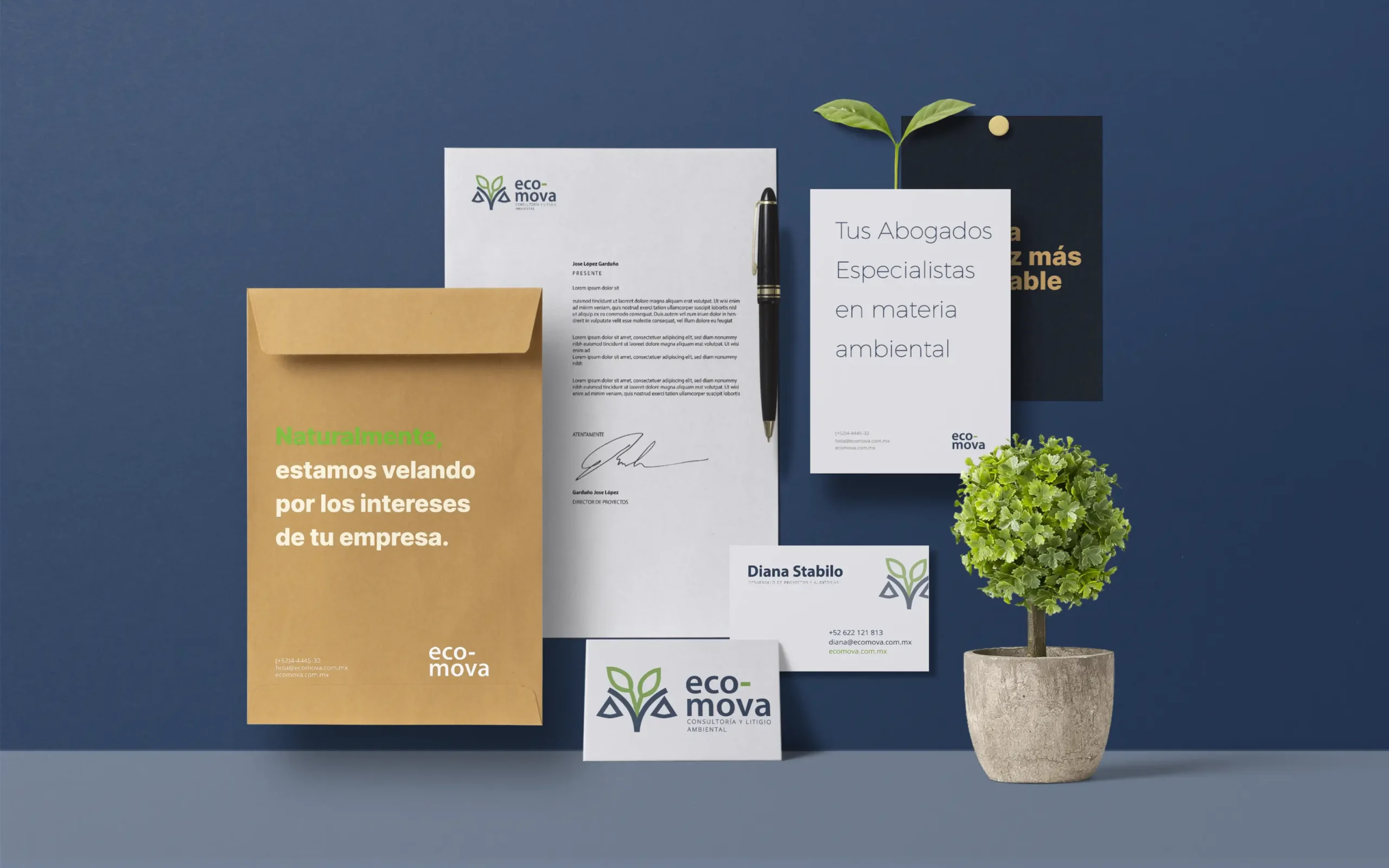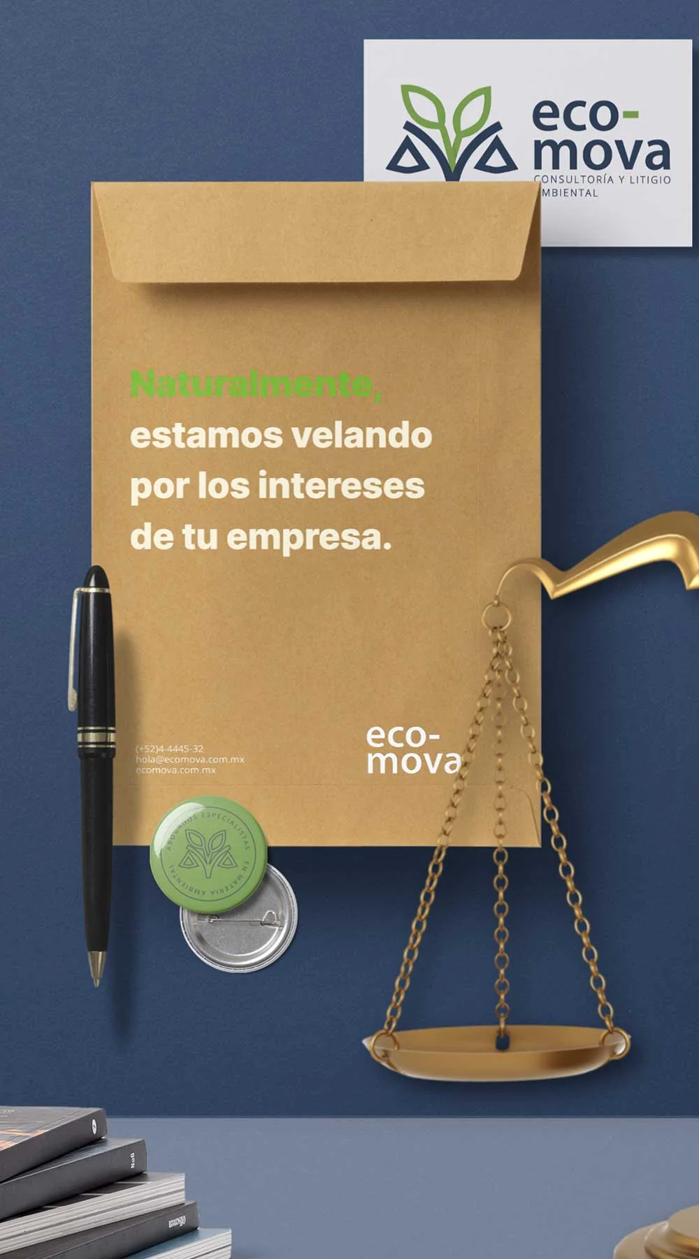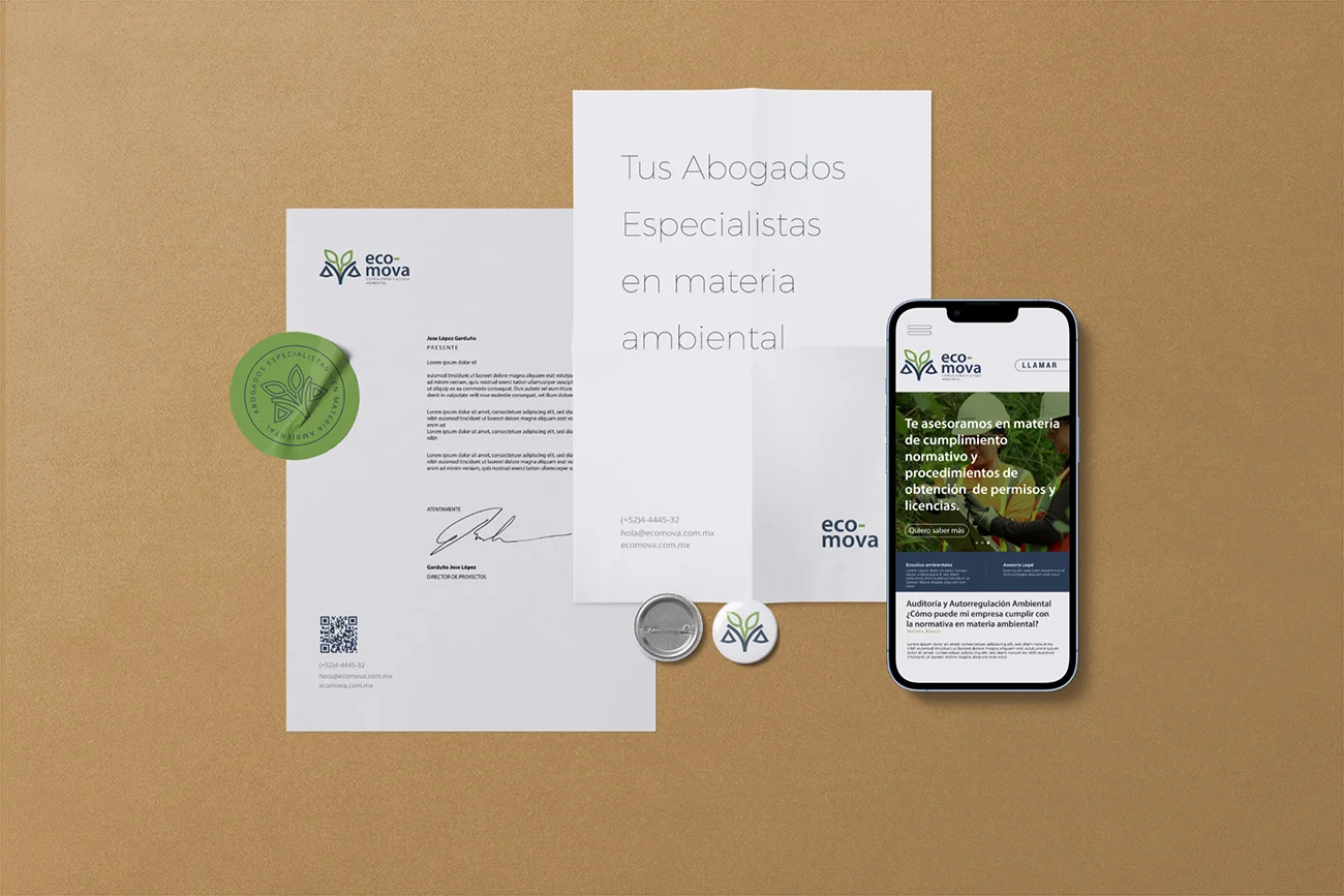 Crear una marca que reflejara de forma clara el equilibrio entre derecho y sostenibilidad que caracteriza a Ecomova, proponer una identidad visual memorable, distintiva y estratégica, que uniera ambos mundos sin perder sobriedad ni credibilidad.